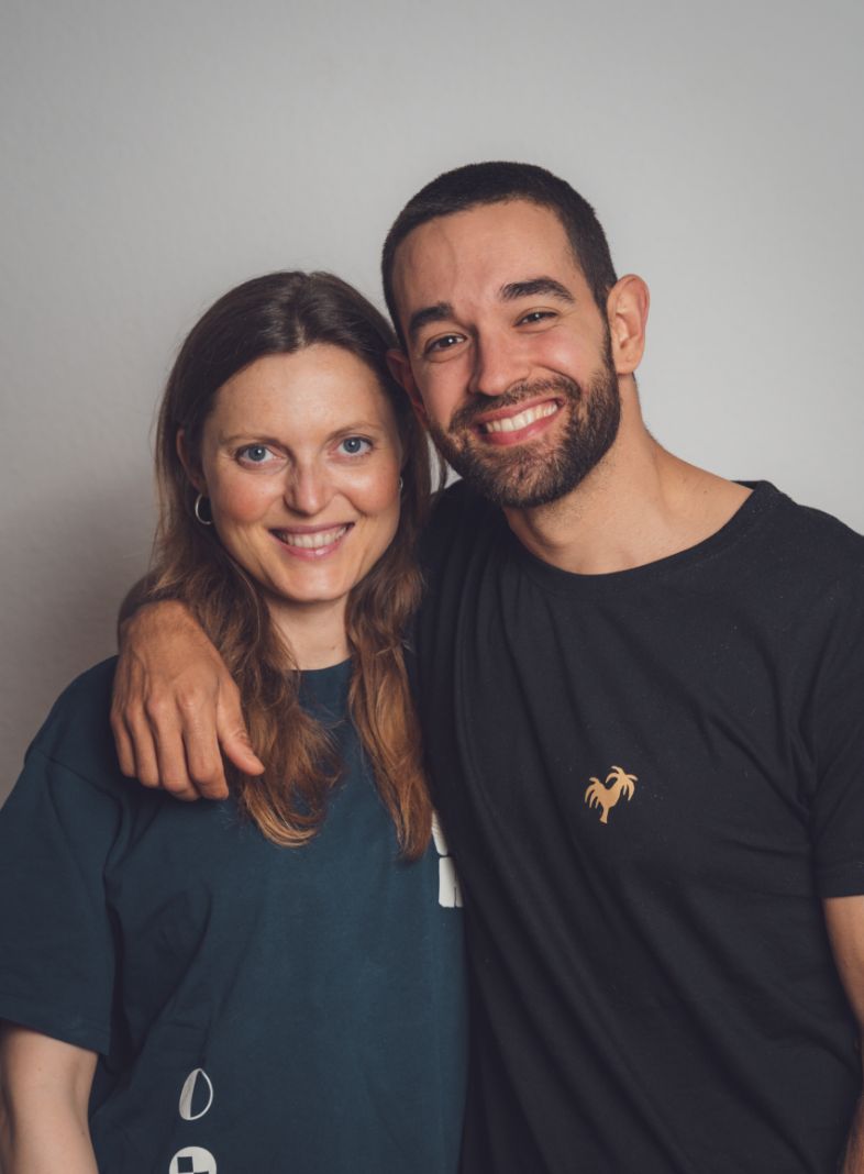 Hola, somos Manel y Hanna. Nos conocimos trabajando en Barcelona hace muchos años, pero lo dejamos bastante rápido y nos fuimos de viaje juntos. Viajamos durante unos años trabajando en remoto hasta que finalmente regresamos a España hace poco, con dos niños y dos perros más, para empezar una nueva vida rodeados de naturaleza. Manel estudió diseño de calzado y Hanna ingeniería textil y estamos ilusionados de volver a combinar lo que originalmente habíamos estudiado con este proyecto. Después de ser bloggers de comida vegana durante algunos años, escribir un libro de cocina y demás, ¿cómo se nos ocurrió este proyecto de repente? Fue cuando nuestro primer hijo cumplió un año y empezó a caminar y comprobamos si llevaba calzado adecuado.